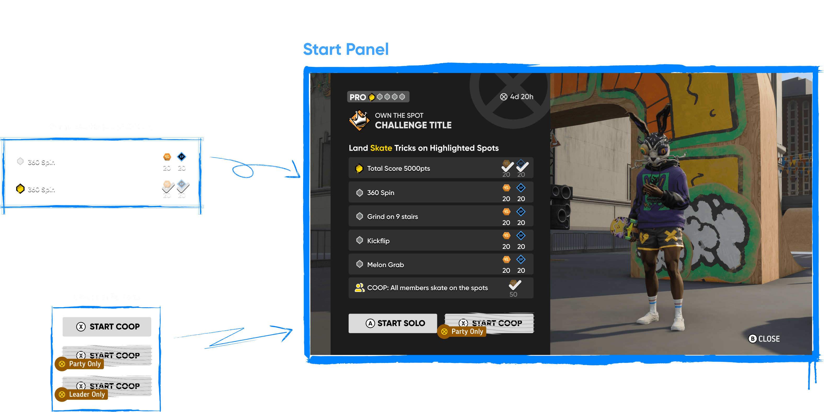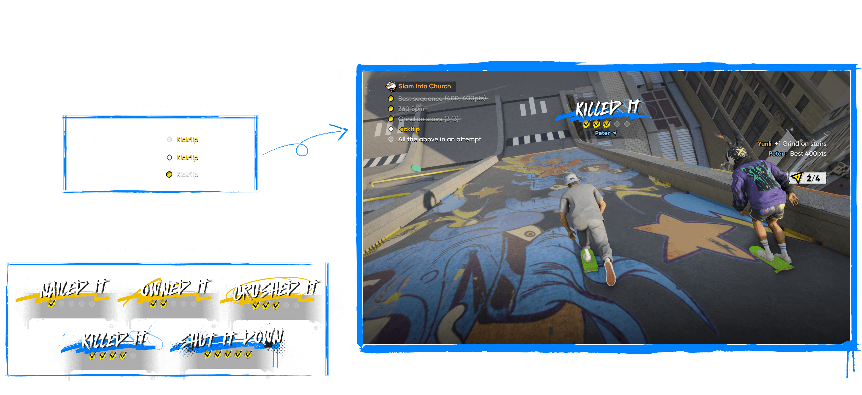 There are tons of tricks and flick-it gestures for kickflip tricks. Players had trouble remembering trick inputs, so having a trick helper could support them in completing challenges more easily.